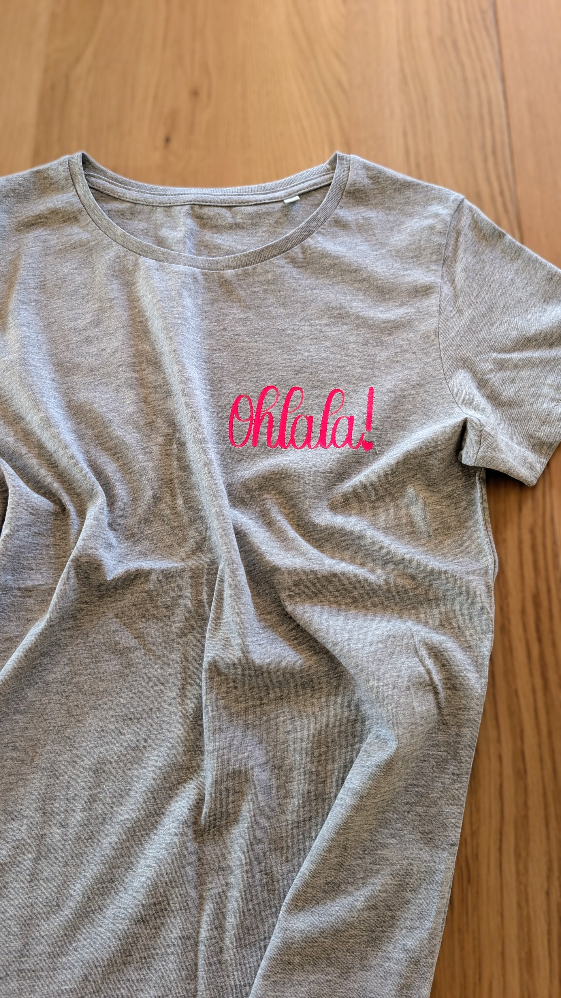 Sale - Damen T-Shirt "ohlala", Gr. S, grau meliert